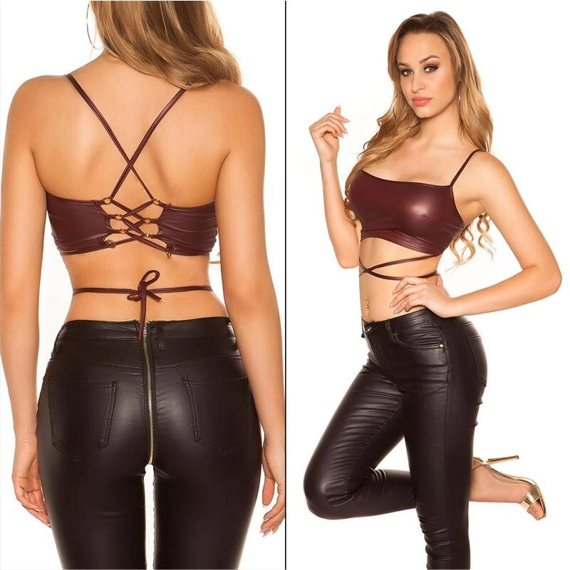 - Sexy bauchfreies Damen-Top aus glänzendem Wetlook-Material