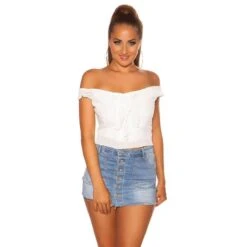 - Süßes Damen Träger-Top aus Rippstrick mit zarter Spitze an den Trägern