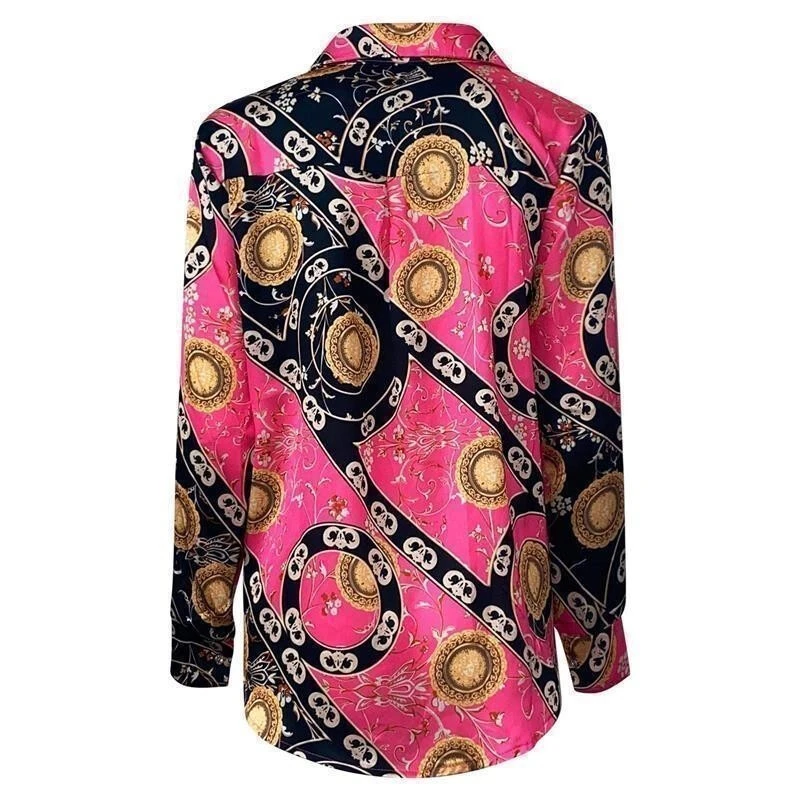 - Elegante Damenbluse mit modischem Paisley-Muster, langen Ärmeln und spitzem Kragen