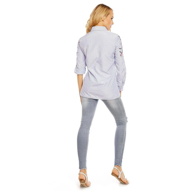 - Trendiges Streifenmuster und Blumenstickereien an den Ärmeln