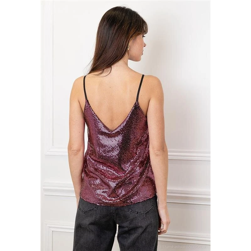 - Sexy Damen Pailletten-Top mit tiefem Ausschnitt und dünnen Spaghettiträgern