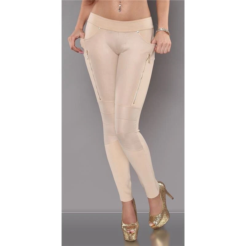 - Stylische, hautenge Damen-Stretchhose mit Patches in glänzendem Wetlook an den Knien