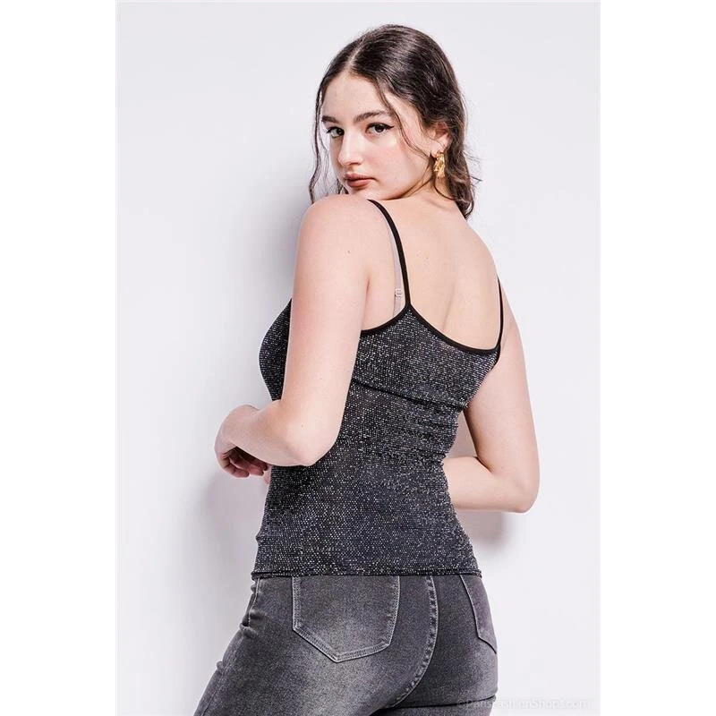 - Sexy Damen-Top aus halbtransparentem Glitzer-Stoff mit dünnen Spaghettiträgern